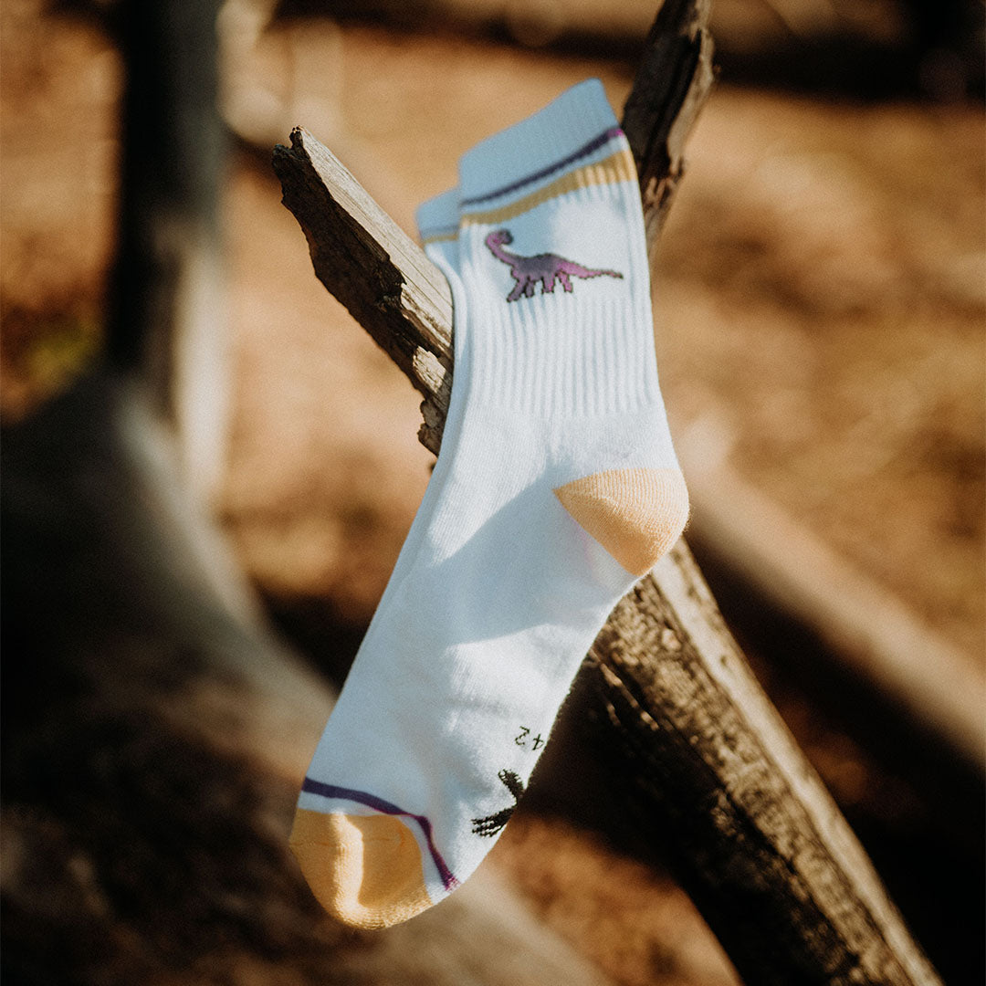 Kreuzueber tobt sich mit ihren Dinos mächtig aus. Nicht nur der Spitzenprädator Tyrannosaurus Rex, sondern auch der Pteranodon, Triceratops oder der Brachiosaurus finden auf ihren Shirts, Socken, Hoodies und Co. Platz. Die Produkte werden unter fairen Bedingungen in Deutschland in der eigenen Produktion bestickt und veredelt.