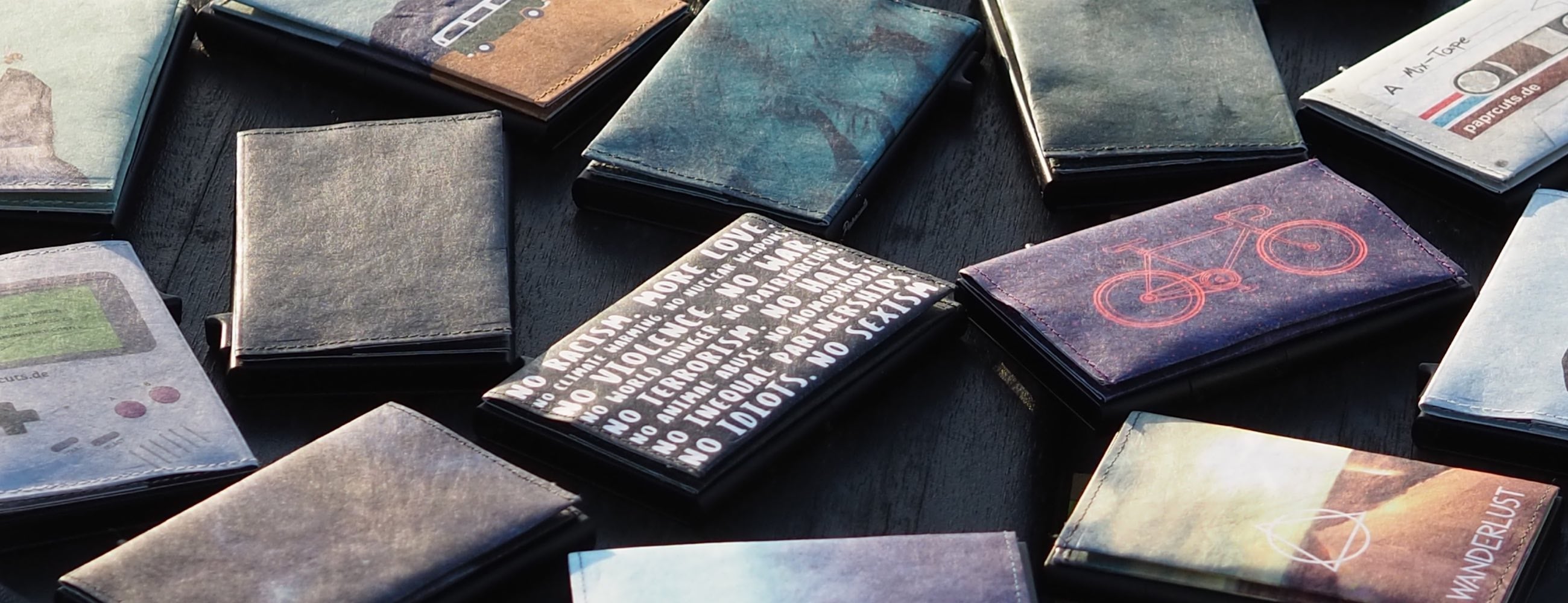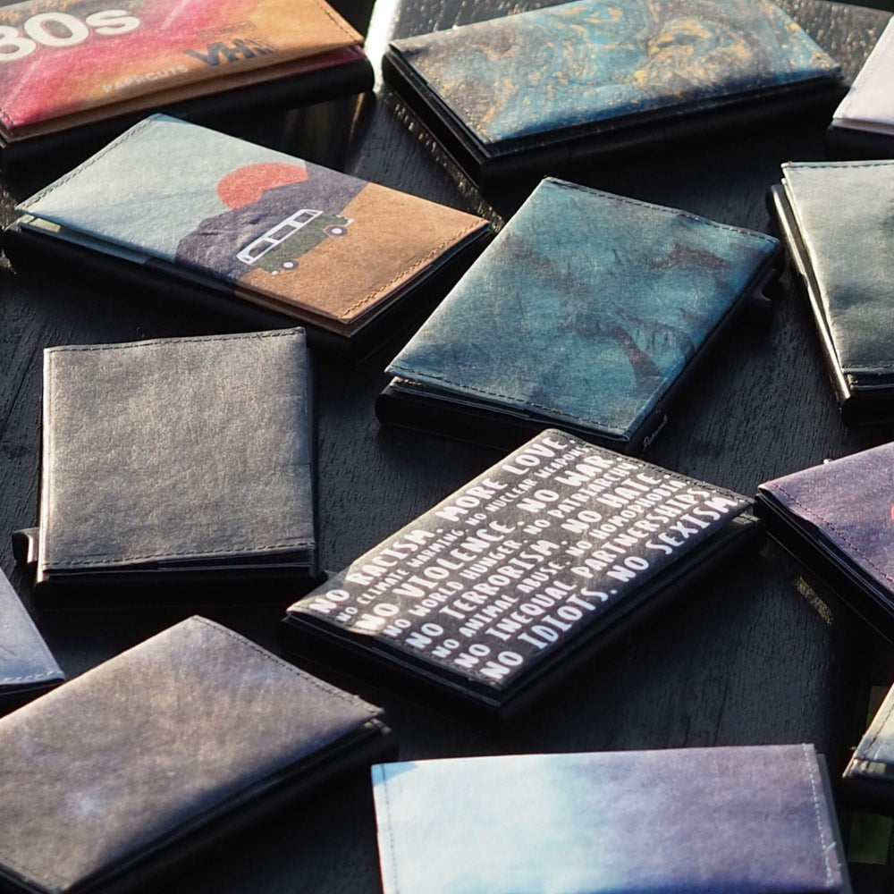 Paprcuts macht ultraleichte, farbenfrohe & faire Portemonnaies und Accessoires aus HighTech-Materialien wie Tyvek, Cork und veganem Leder.